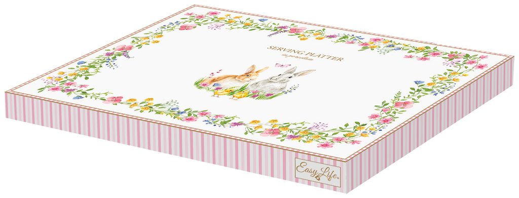Velikonoční podnos ve tvaru vejce z kolekce Happy Easter od značky Easy Life je dokonalým doplňkem pro sváteční stolování. Jemný motiv zajíčků, kuřátek a jarních květin dodává podnosu kouzelnou atmosféru. Ideální na servírování dobrot i jako dekorace. Dodáváno v elegantní dárkové krabičce.