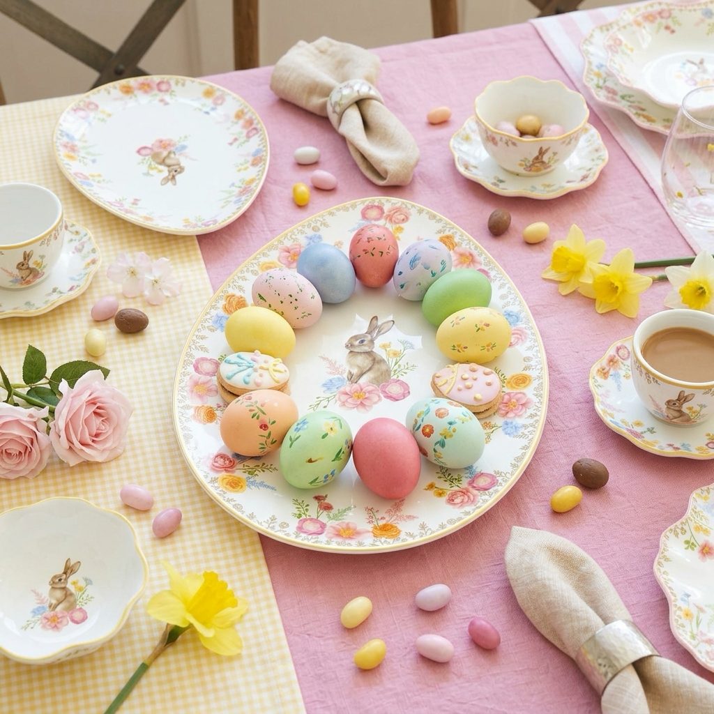 Jemný porcelánový podnos ve tvaru velikonočního vejce vnese na váš stůl jarní svěžest, eleganci a slavnostní atmosféru. Květinový motiv se zajíčkem a zlatými detaily je ideální pro servírování cukroví, dezertů i jako stylová velikonoční dekorace.