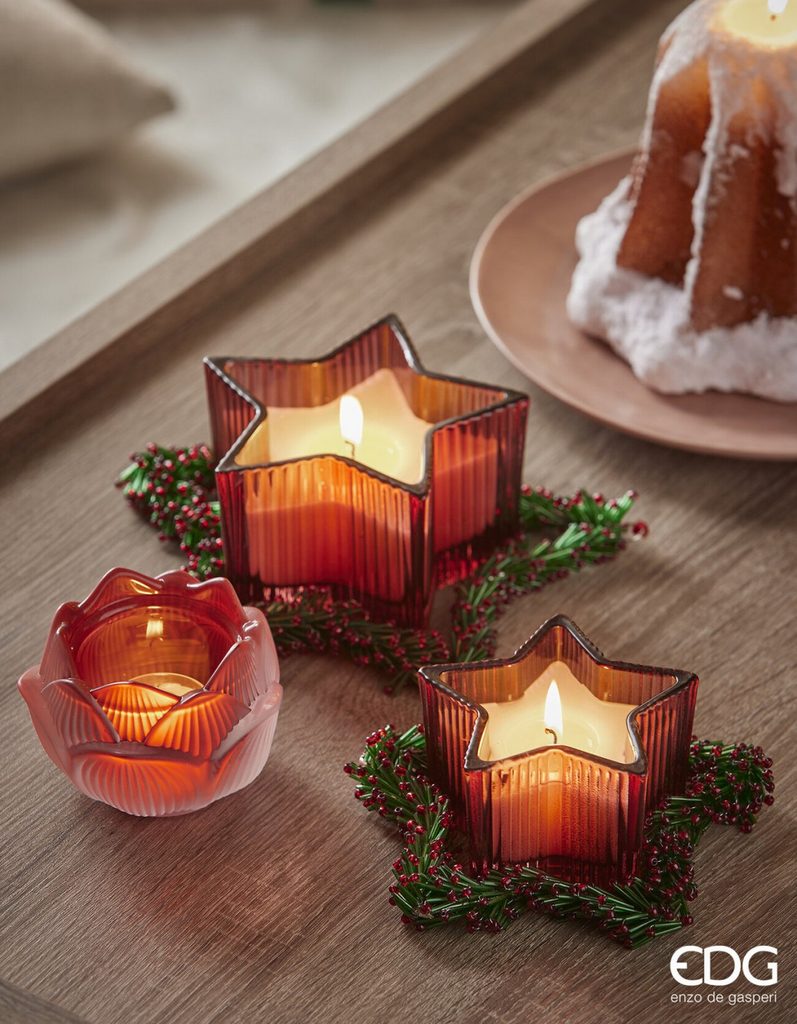 Kouzelná vonná svíčka ve tvaru hvězdy rozjasní váš domov teplým světlem a jemnou vůní ambry. Elegantní červené sklo dodá interiéru sváteční atmosféru – ideální pro vánoční večery, dárkové balíčky i dekorativní aranžmá.