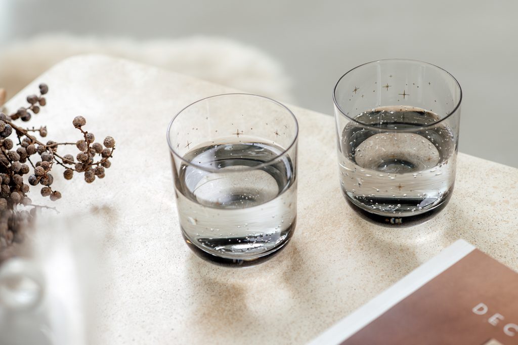 Sklenice na vodu Villeroy & Boch z kolekce Winter Glow ozvláštní váš vánoční prostřený stůl svým jemným a elegantně kouřovým designem. Sklenice byly vyrobeny z křišťálového skla o objemu 200 ml a výšce 9,5 cm. Sada obsahuje 2 sklenice vhodné do myčky nádobí.