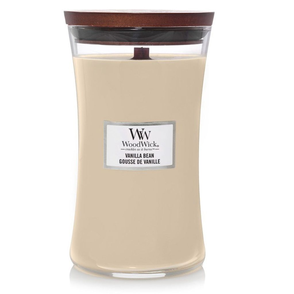 Vonná svíčka ve tvaru velké vázy s dřevěným knotem WoodWick s vůní vanilkového lusku. Odpočiňte si u hřejivé a přírodní vůně vanilkového lusku.